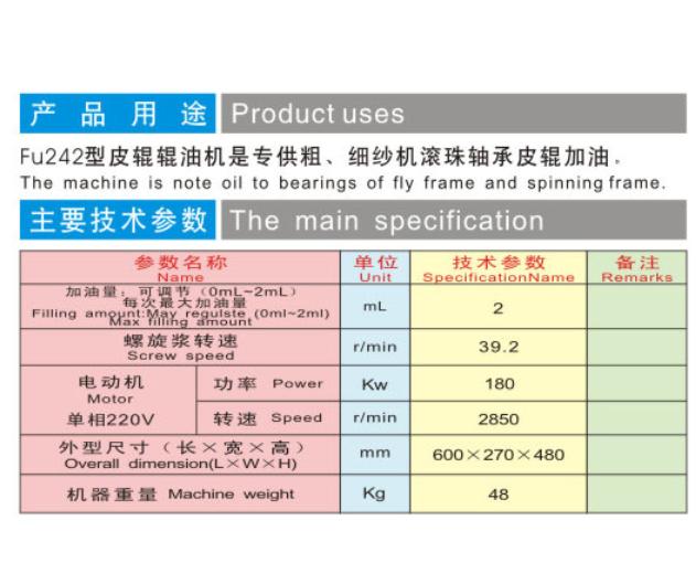 FU242型皮輥加油機是專供組、細(xì)紗機滾珠軸承皮輥加油.